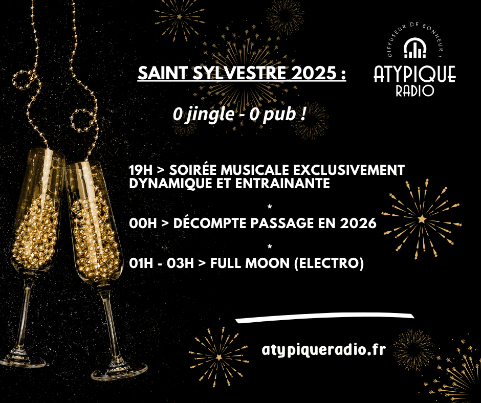 De quoi booster votre dernière soirée 2025 ! 🎶 L'équipe Atypique RADIO vous souhaite une belle fin d'année 💜