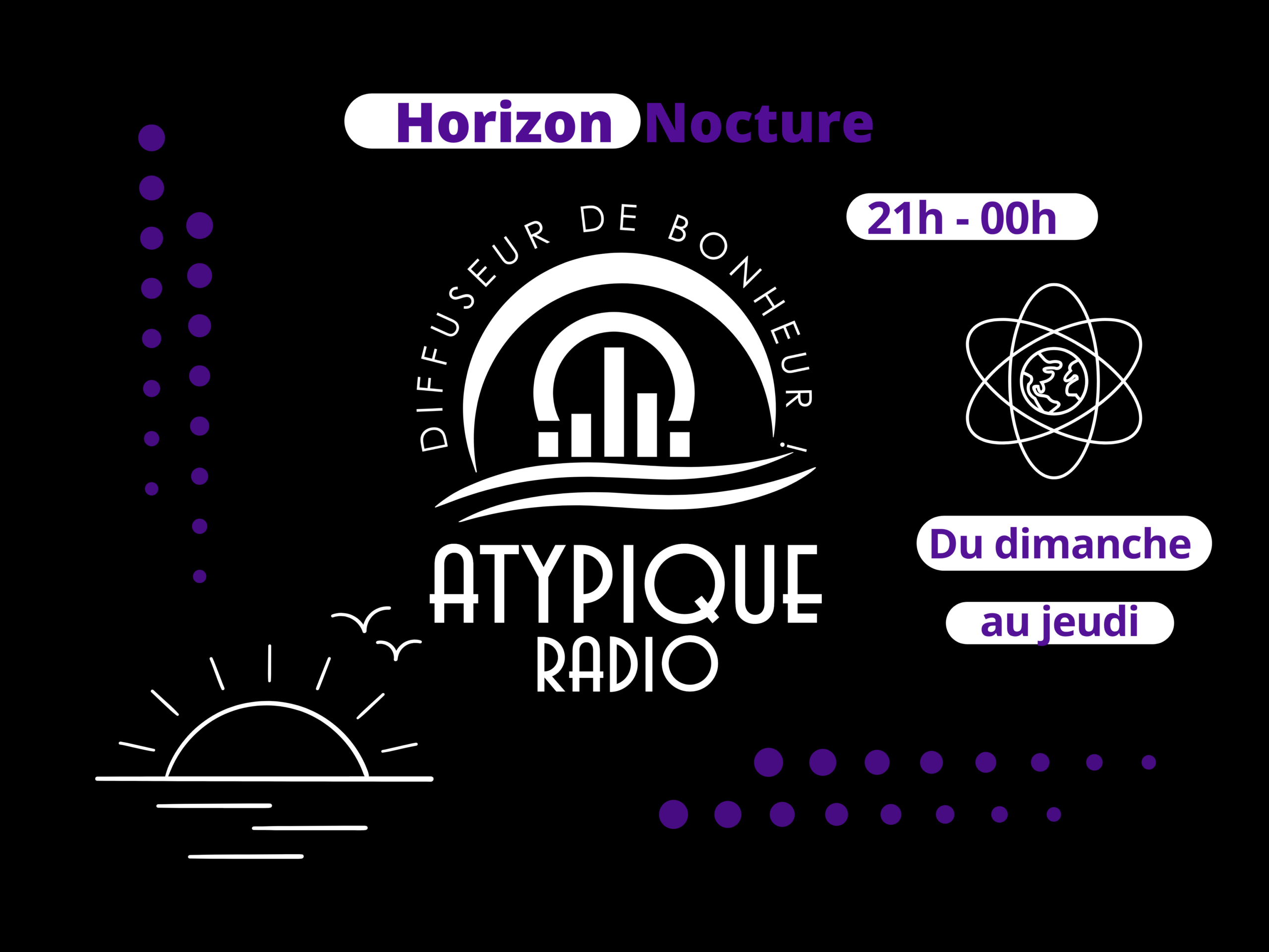 Du dimanche au jeudi de 21h à minuit, sur Atypique RADIO !