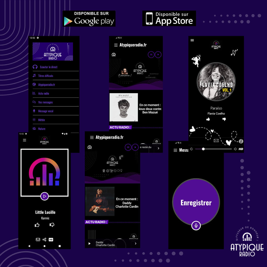 Sylvain Trop bien maintenant sur iOS ! Merci l'équipe✨ Fanny du 64 De la musique qui boost ! anti morosité 😎 Merci Atypique radio Tytou 85 Salut, petit mot pour vous dire BRAVO ! 🎶